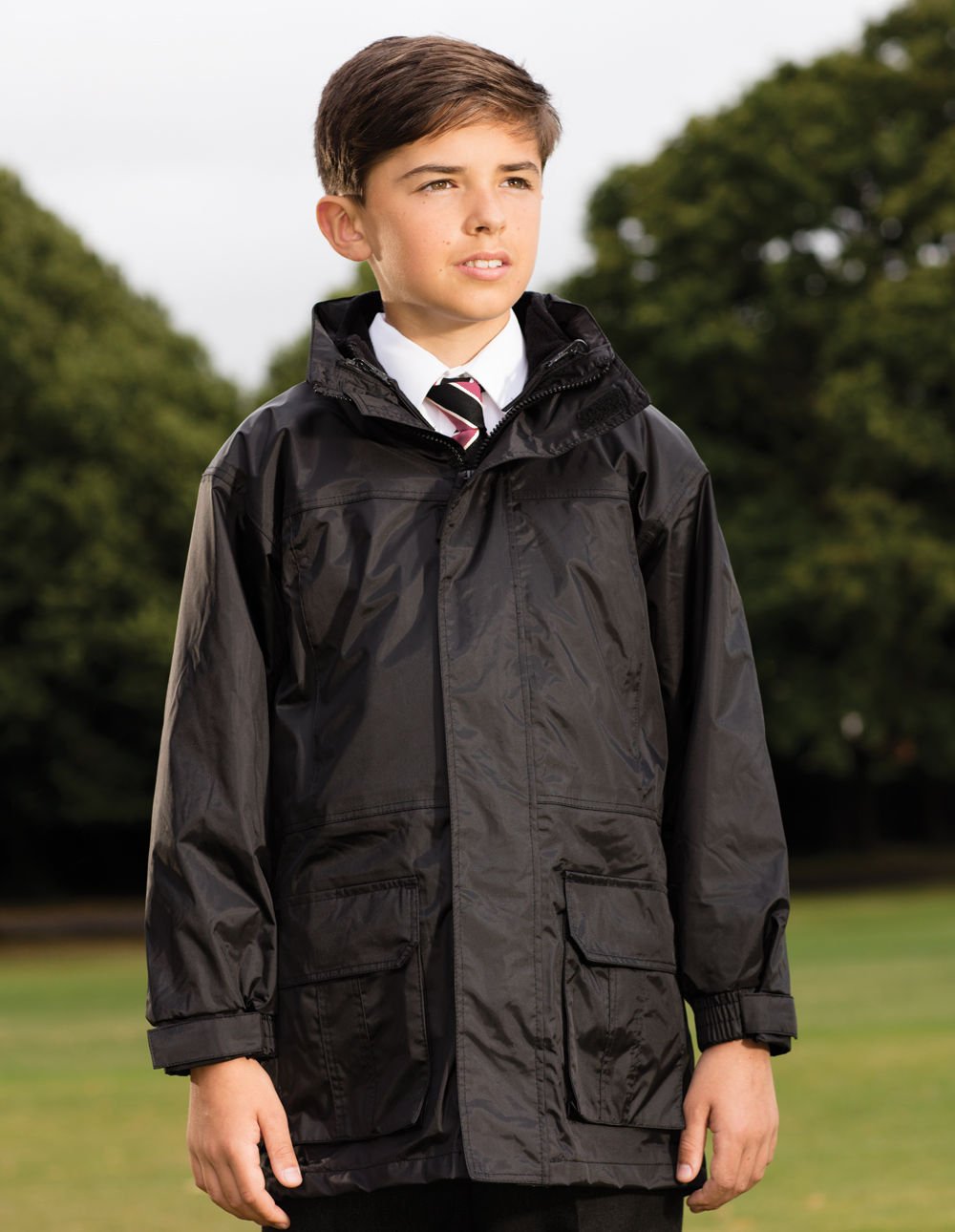 Incredibly warm, this is an excellent practical 3-in-1 jacket with removable fleece lining in sizes to suit all school ages. UK manufactured by the renowned Beau Brummel factory.