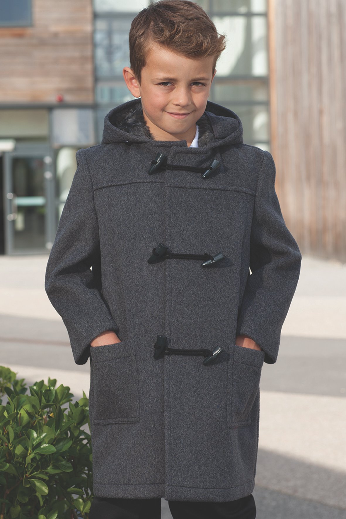 - Traditional duffle coat with horn toggles for boys and girls in sizes to suit all school children. Made from 70% wool & 30% other fibres.