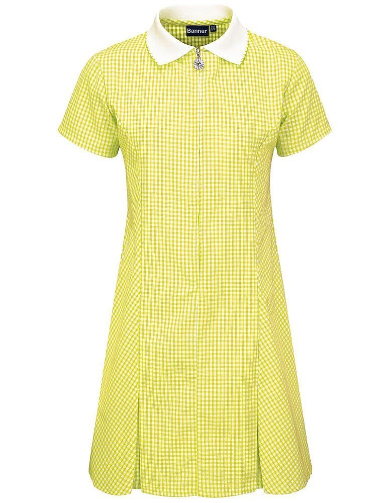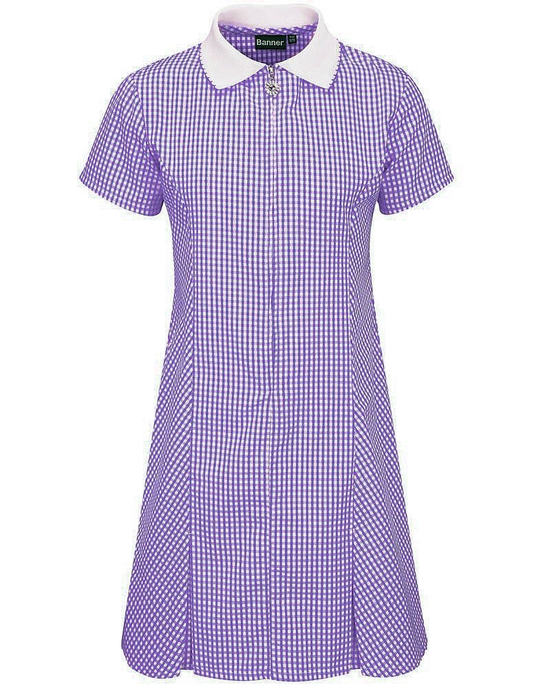 Banner quality summer gingham dress with zipped front, pleats and matching scrunchie: