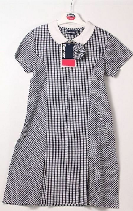 Banner Gingham Dress (Zip Front), Navy age 3/4