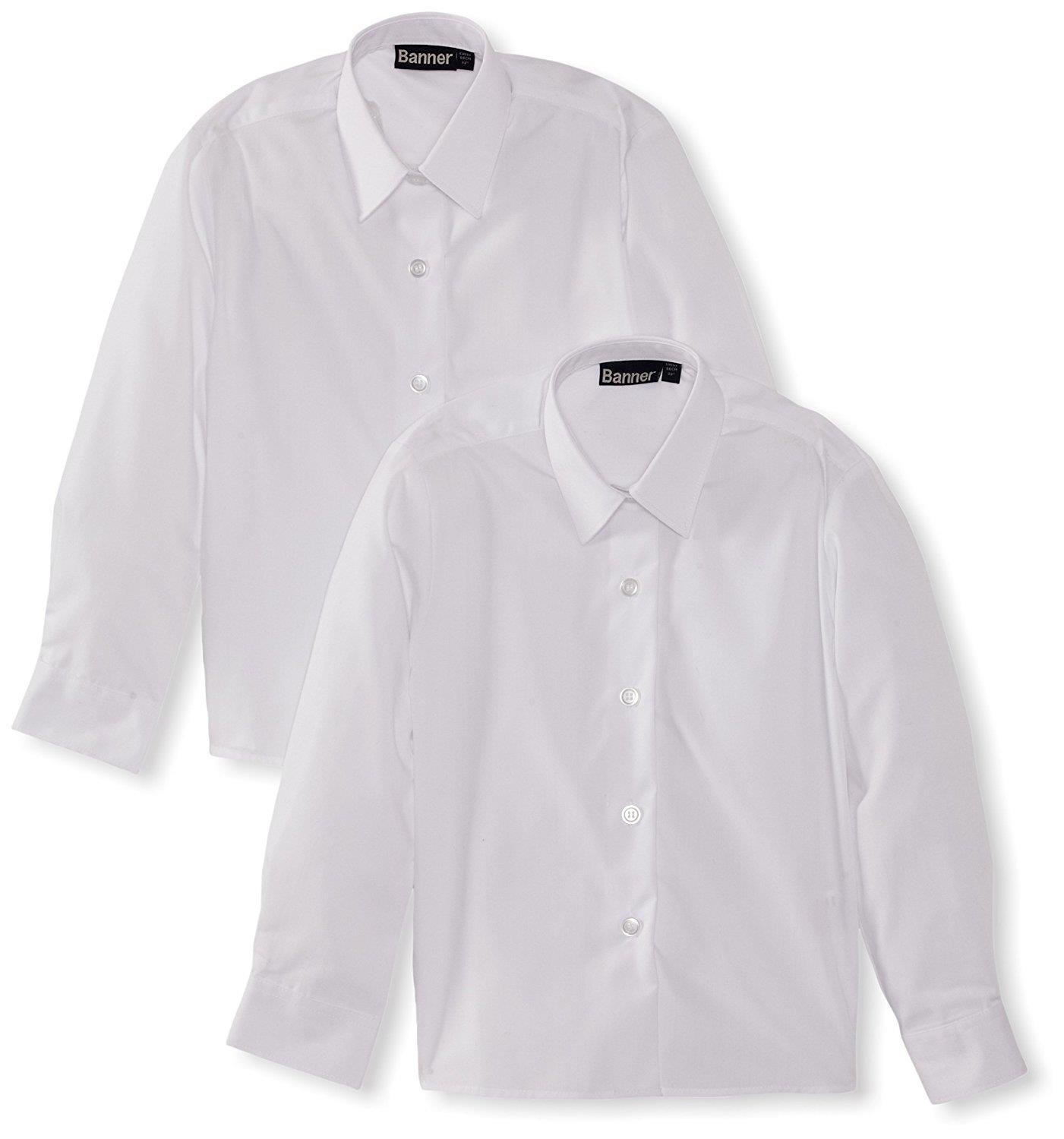 Girls Blouse, Long Sleeved – Pair (Banner), White