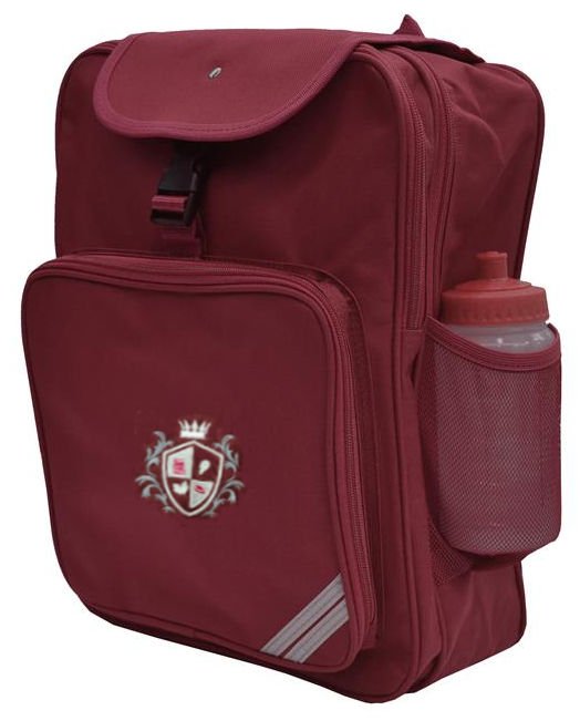 Maroon backpack/rucksack with embroidered Imperial Oak School logo :