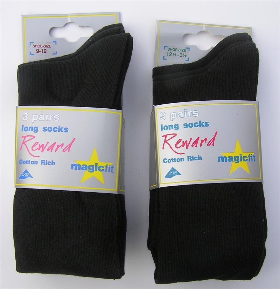 High quality soft cotton rich RIBBED knee length school socks with Lycra in BLACK – twin pack.