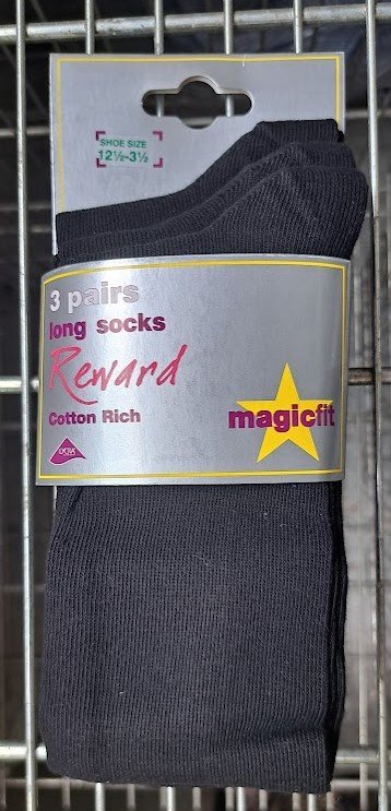 Soft cotton rich long length BLACK school socks with Lycra. Smooth knit :-