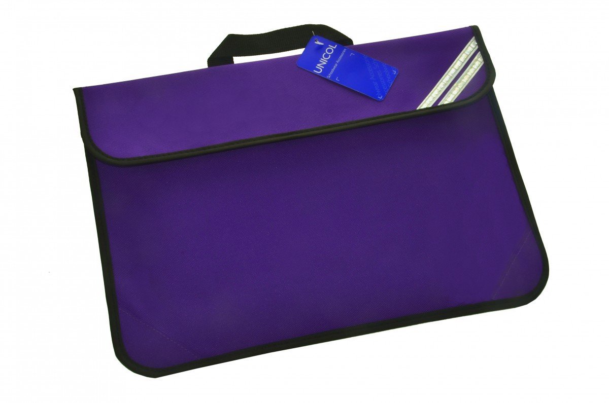 Purple Book Bag with webbed carrying handle and name label. Further details below :-