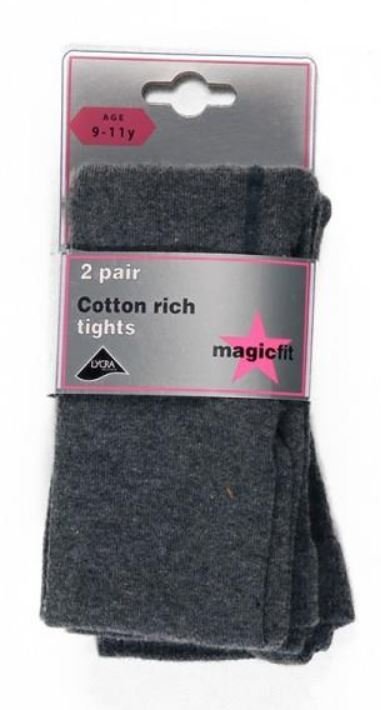 Quality UK Made, Cotton Rich Girls Tights, Magic Fit Brand, Pack of 2, Grey